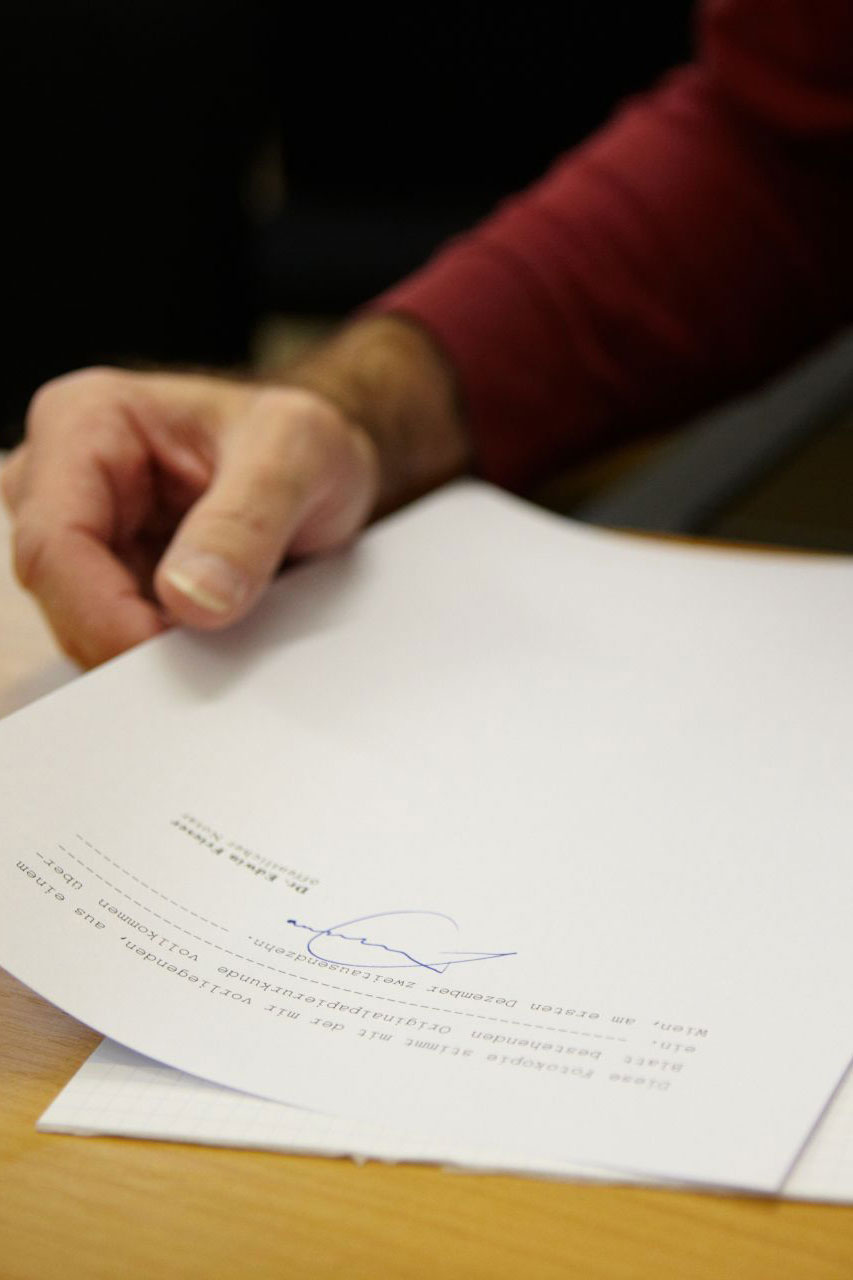 Für viele Urkunden ist die Beglaubigung Ihrer Unterschrift erforderlich. Der Notar benötigt hiefür einen amtlichen Lichtbildausweis von Ihnen. Bei Firmazeichnungen bestätigt Ihr Notar auch die Zeichnungsberechtigung nach Einsicht in das Firmenbuch.